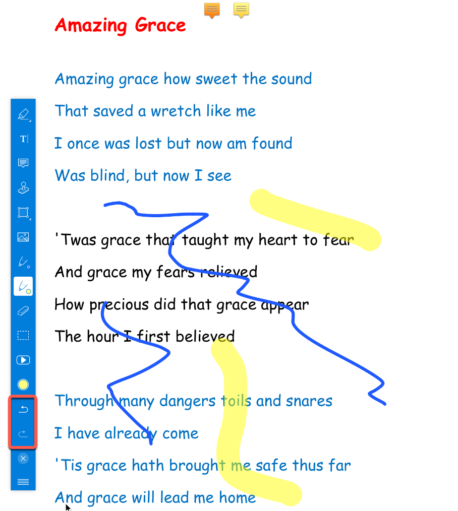 Při volném kreslení (14+15) a kreslení tvarů (8-12) můžete pomocí funkce Undo/Redo vrátit zpět poslední kroky.