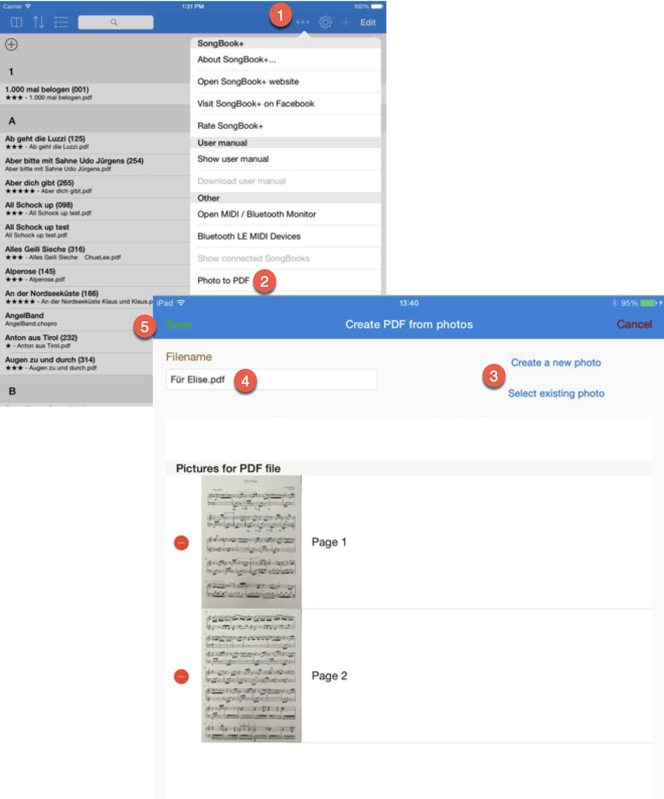 <img src="https://3056682839-files.gitbook.io/~/files/v0/b/gitbook-x-prod.appspot.com/o/spaces%2FU2Hd6xxR6DfZltkv8hvC%2Fuploads%2Fgit-blob-14af25b30b774428b15a988f9f808a4da873c60c%2Fbulletpoint-03.png?alt=media" alt="" data-size="line">Inserisci foto con la fotocamera integrata o seleziona foto già esistenti. Ogni foto inserita diventa una nuova pagina per il file PDF.
