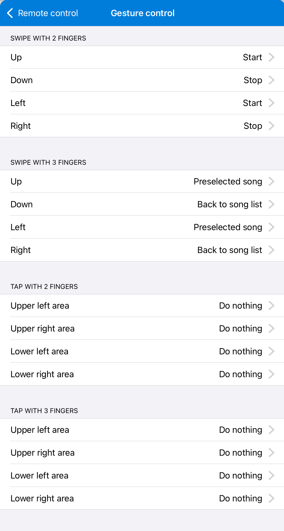SongBook+ może rozpoznawać gesty przesuwania z 2 lub 3 palcami w górę, dół, lewo i prawo oraz stuknięcia z 2 lub 3 palcami w lewym górnym, prawym górnym, lewym dolnym lub prawym dolnym rogu.