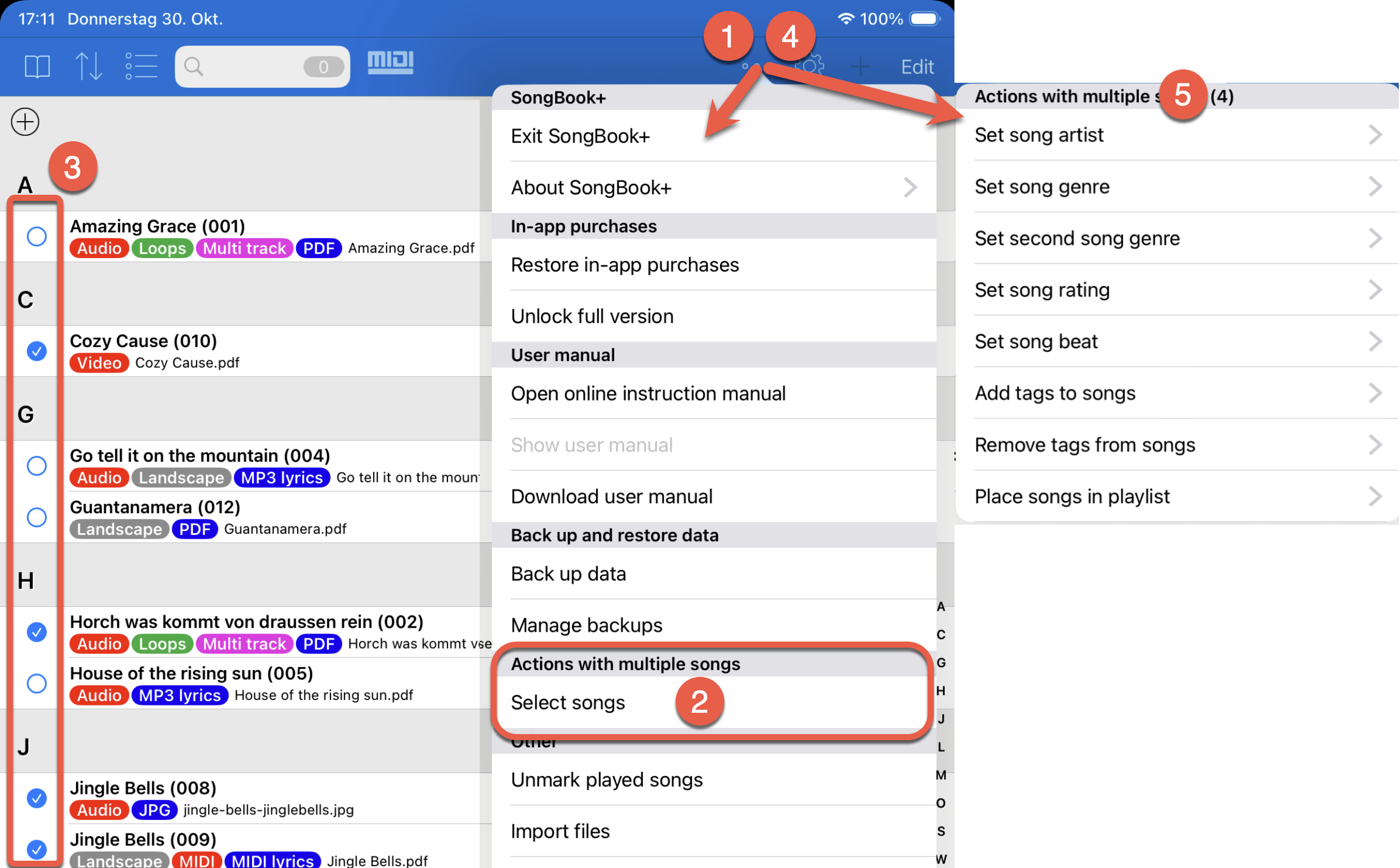 <img src="https://971141510-files.gitbook.io/~/files/v0/b/gitbook-x-prod.appspot.com/o/spaces%2FUpdcjoWQHZJpKPiHUlzq%2Fuploads%2Fgit-blob-b699655ac8771463ca5f56be31a596f7f26ed933%2Fbulletpoint-02.png?alt=media" alt="" data-size="line">Selecione o item de menu "Selecionar músicas".