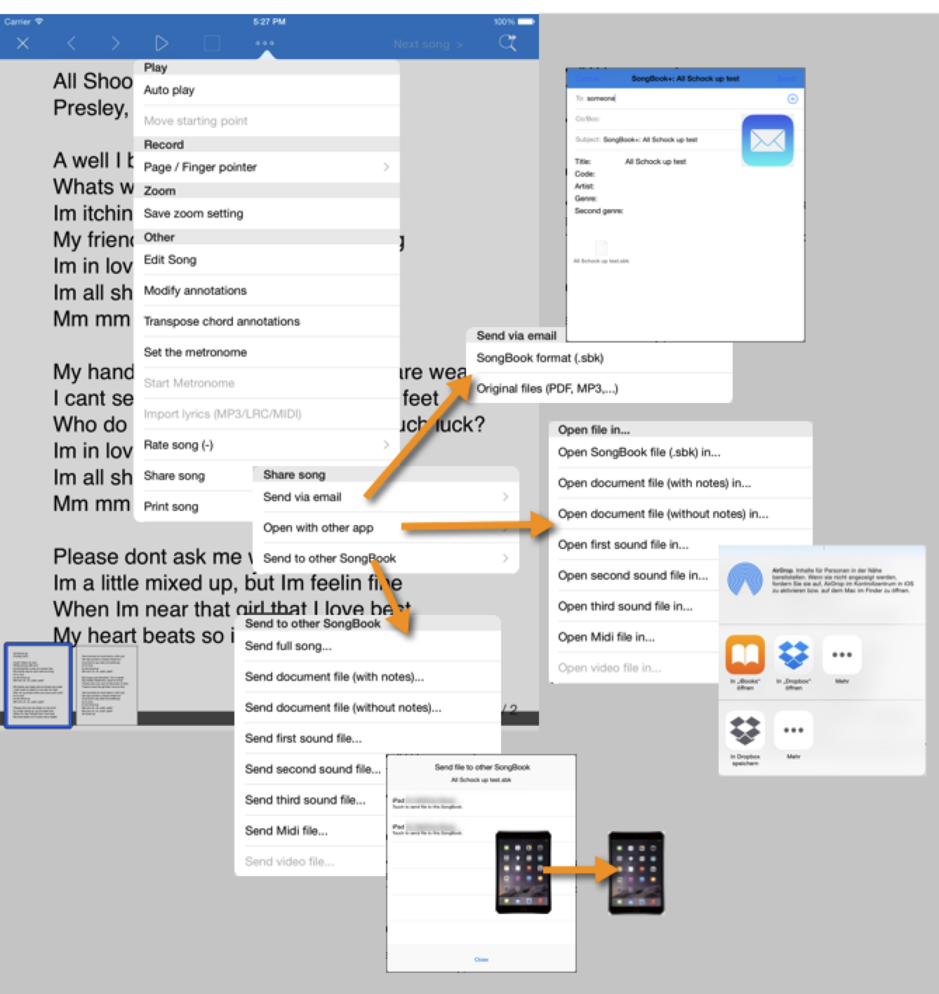 Com a função "Compartilhar música", você pode compartilhar uma música inteira (.sbk) ou arquivos individuais dela (.pdf, .mp3, .mid, ...):