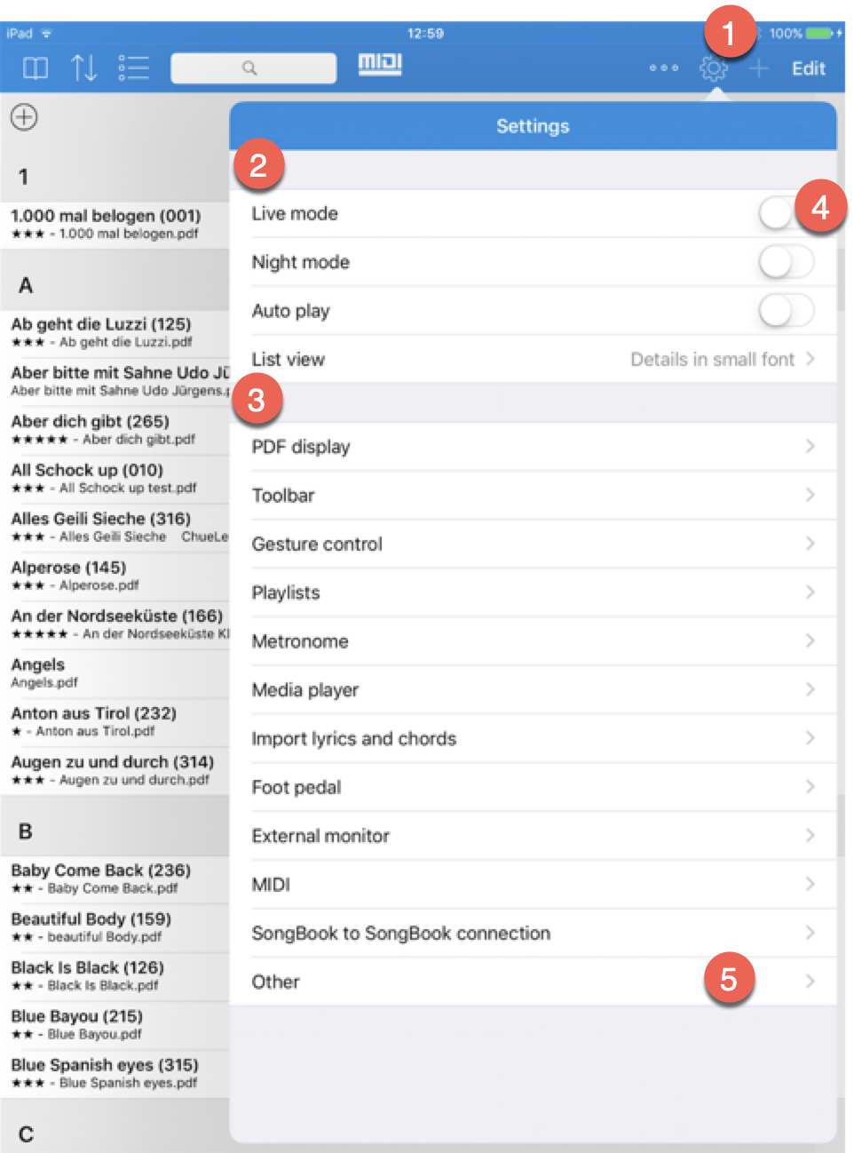一些关于 SongBook+ 的设置也可以在操作系统中找到，即在设备的“设置”应用中。